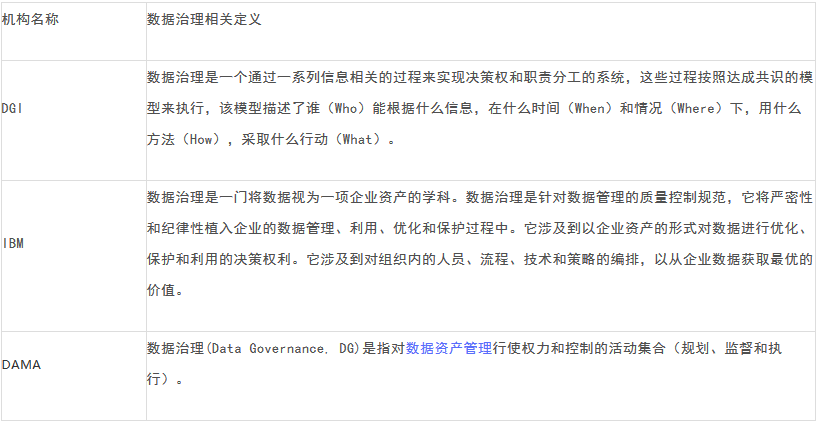 要想搭建数据治理平台,第一时间肯定要分析什么是数据治理。不同组织对数据治理的分析各不相同。