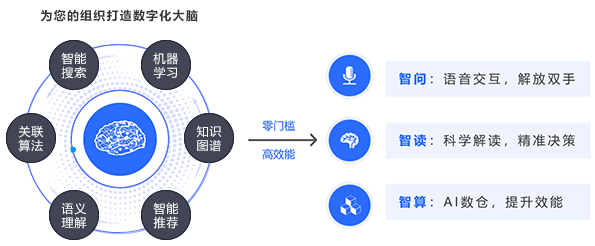 智能化决策:将AI、NLP等人工智能技术融入产品中,打造以“智问”、“智读”、“智算”三大核心功能的智能化决策体系,降低分析的门槛,实现更智能的数据洞察。